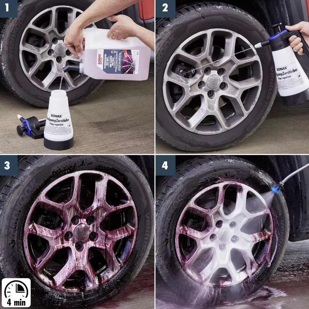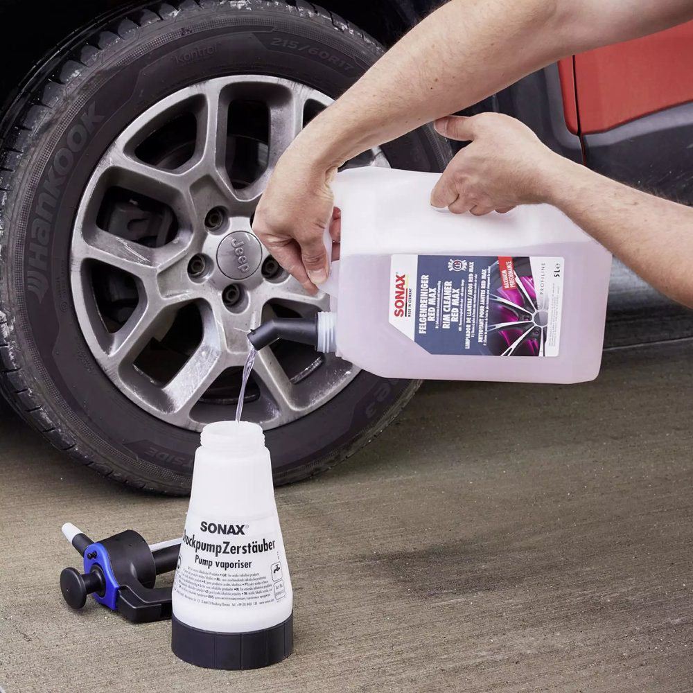 - Öntse a tisztítószert hígítatlanul a SONAX savas/lúgos termékekhez való nyomószivattyús permetezőbe. (SONAX Szórófejes Flakon Savas 1,25liter, 1 db Cikkszám: 496941)